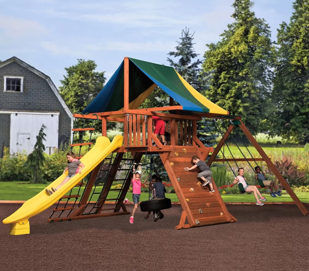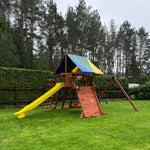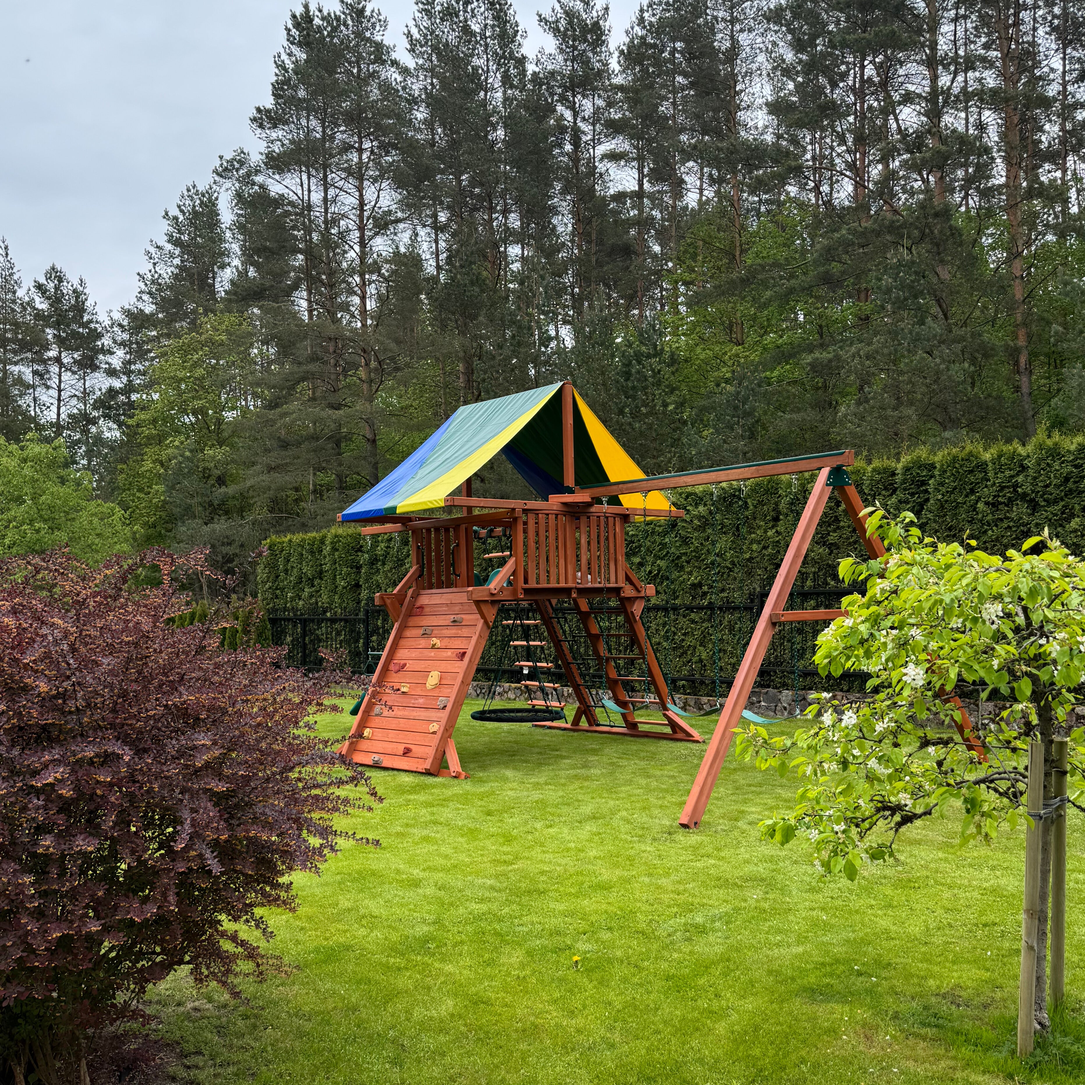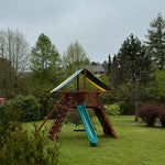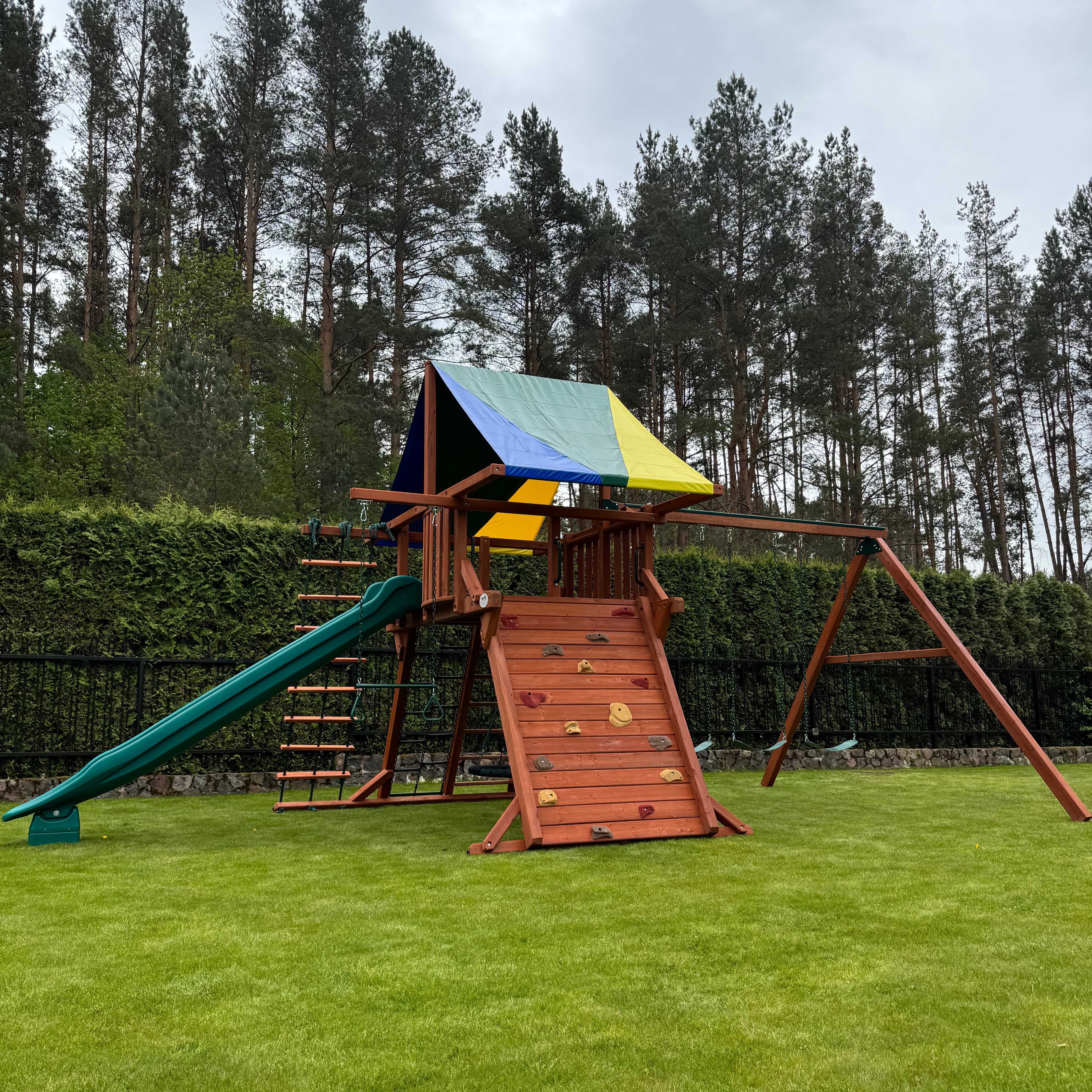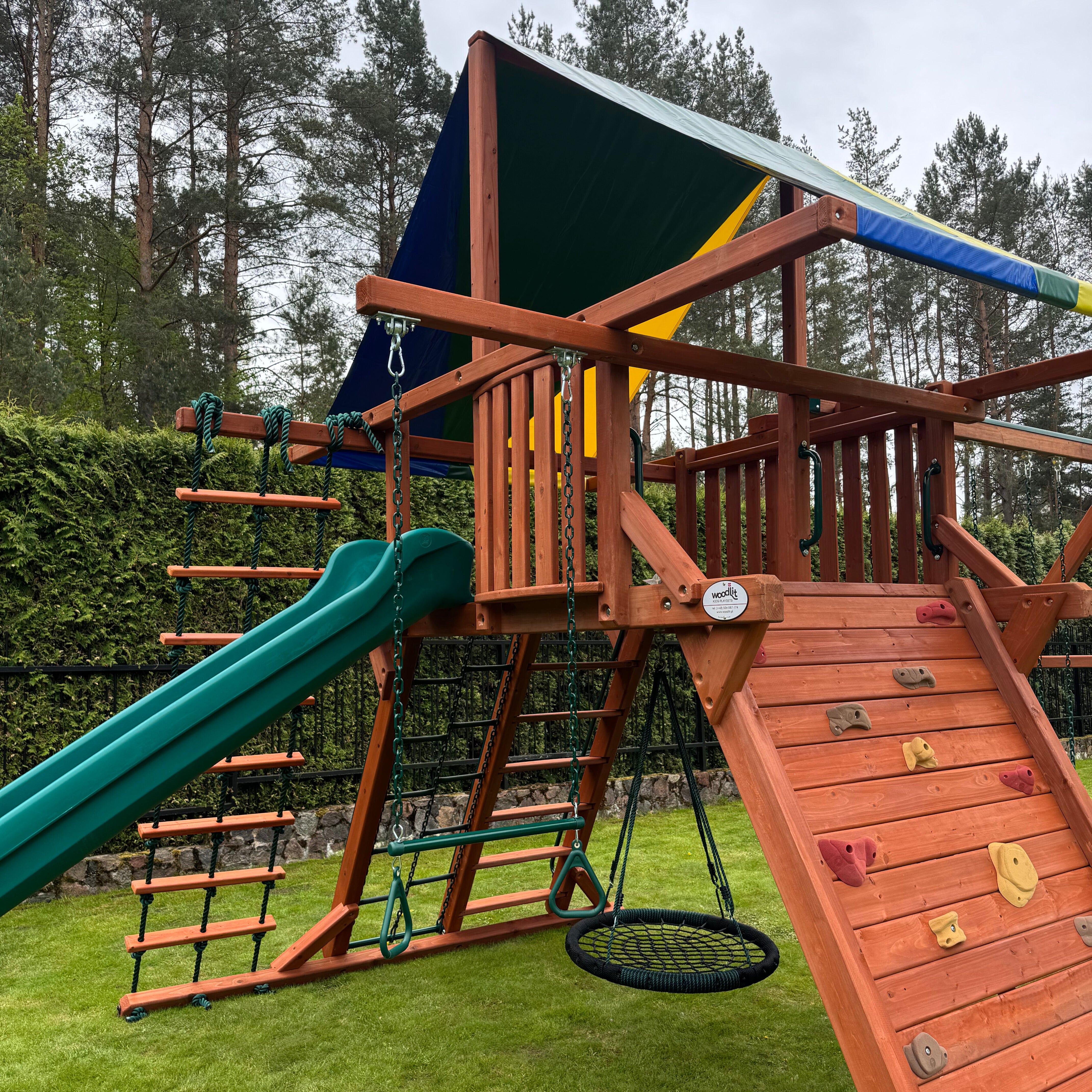 Olympian Peak Junior 1 – tai aukščiausios klasės medinė žaidimų aikštelė, sukurta dovanoti nesibaigiančią lauko pramogą ir nuotykius jūsų sode.